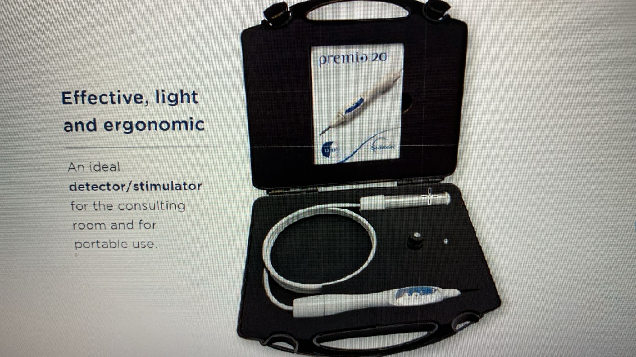 PREMIO 20 DT este un dispozitiv modern, conceput special de compania franceză Sedatelec pentru localizarea (detecția) și stimularea electrică (tratament) a punctelor de auriculoterapie, dar si a tuturor punctelor de acupunctură de pe corp pentru eliminarea diverselor afecțiuni și patologii.